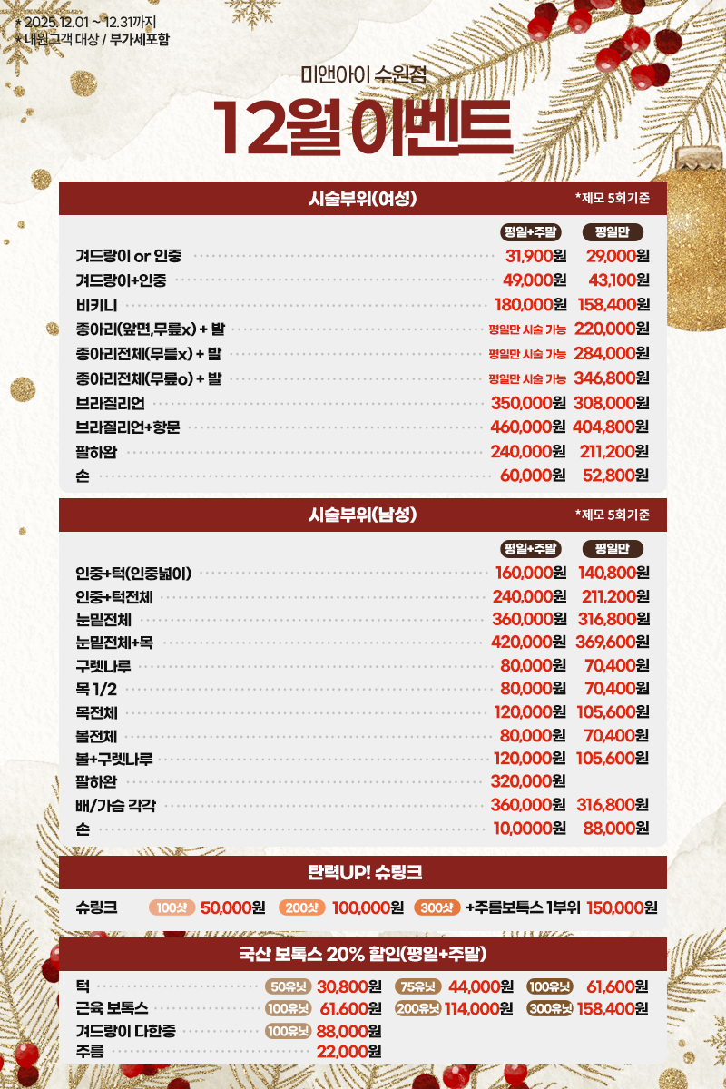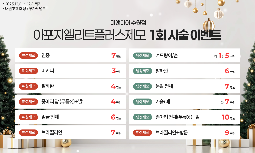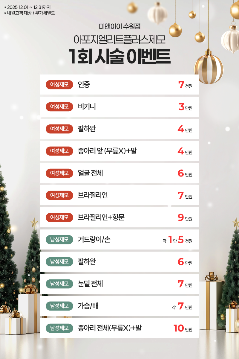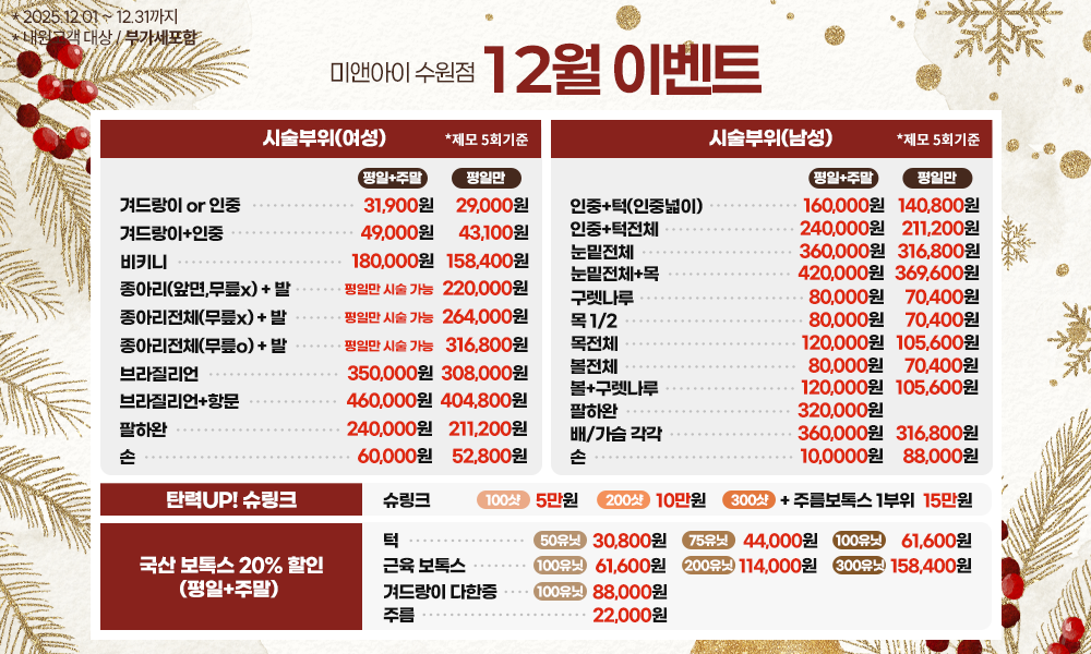 저희 미앤아이의원 수원점에서 안내드리는 가격은 부가세가 포함된 가격입니다.